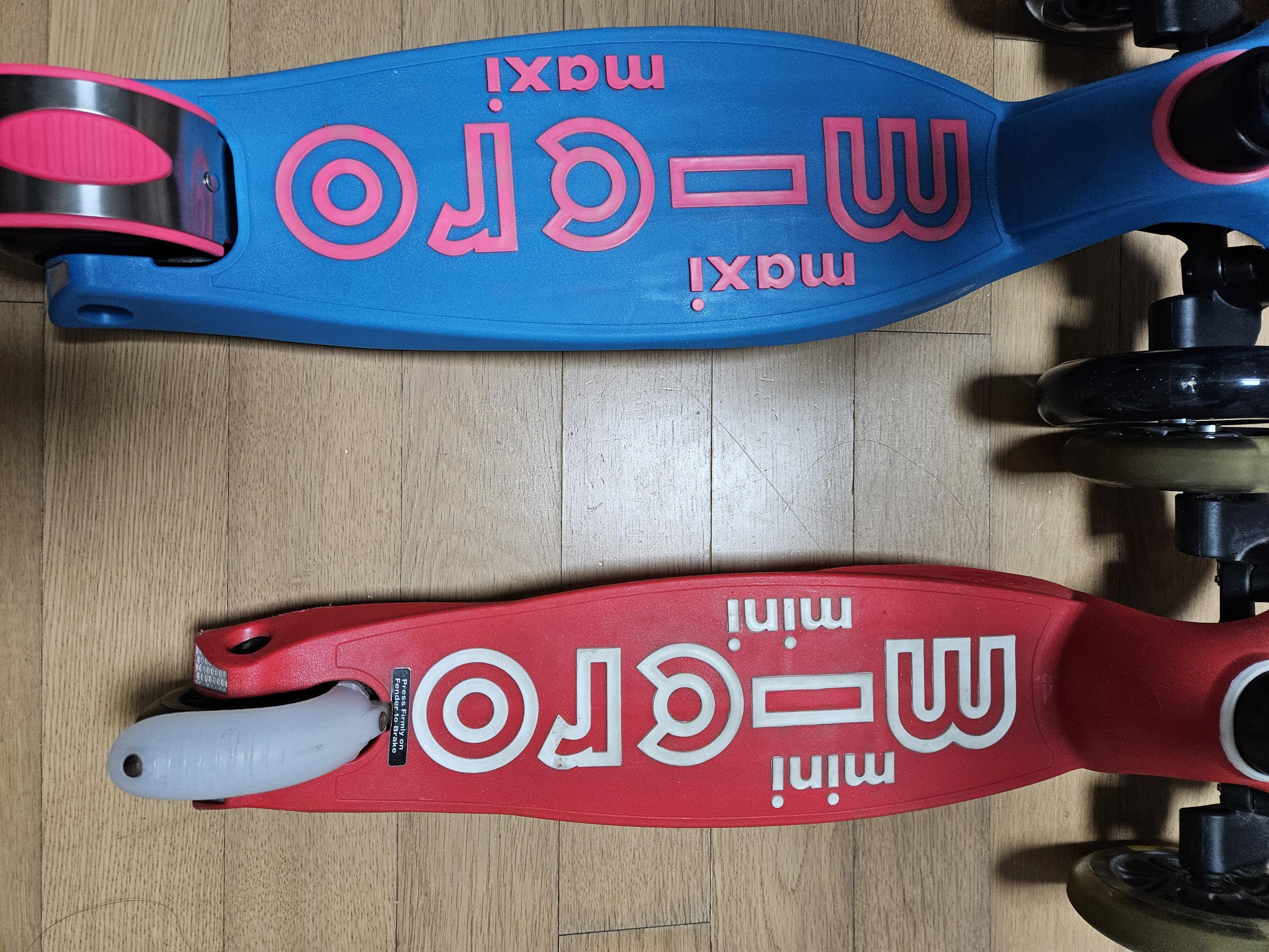 요즘 어린이집이나 유치원을 다니는 아이들도 각자 자가용이 있다. 아이들의 자가용은 어린이용 킥보드이다. 앞 바퀴는 두 개, 뒷 바퀴는 한 개가 달린 모습의 킥보드다. 핸들을 돌리지 않고 무게중심만 옮겨줘도 방향을 바꿀 수 있는 나름의 첨단 기술이 도입된 운송 수단이다. 내가 어렸을 때는 뻣뻣한 핸들을 돌려야 하는 무겁디 무거운 킥보드를 탔었던 것으로 기억하는데 요즘 아이들은 장난감이나 킥보드도 좋은 걸 가지고 논다. 그런데 킥보드라고 해서 다 같은 킥보드가 아니었다. 아이들의 킥보드 안에서도 브랜드가 있고, 급이 있었다. 마치 자동차가 국산차, 외제차로 구별되고 소형, 중형으로 구분되듯이 아이들의 킥보드 세계도 유사하게 구분되었다. 이번 글에서는 마이크로 킥보드의 두 종류인 미니와 맥시의 차이점을 분석해본다.