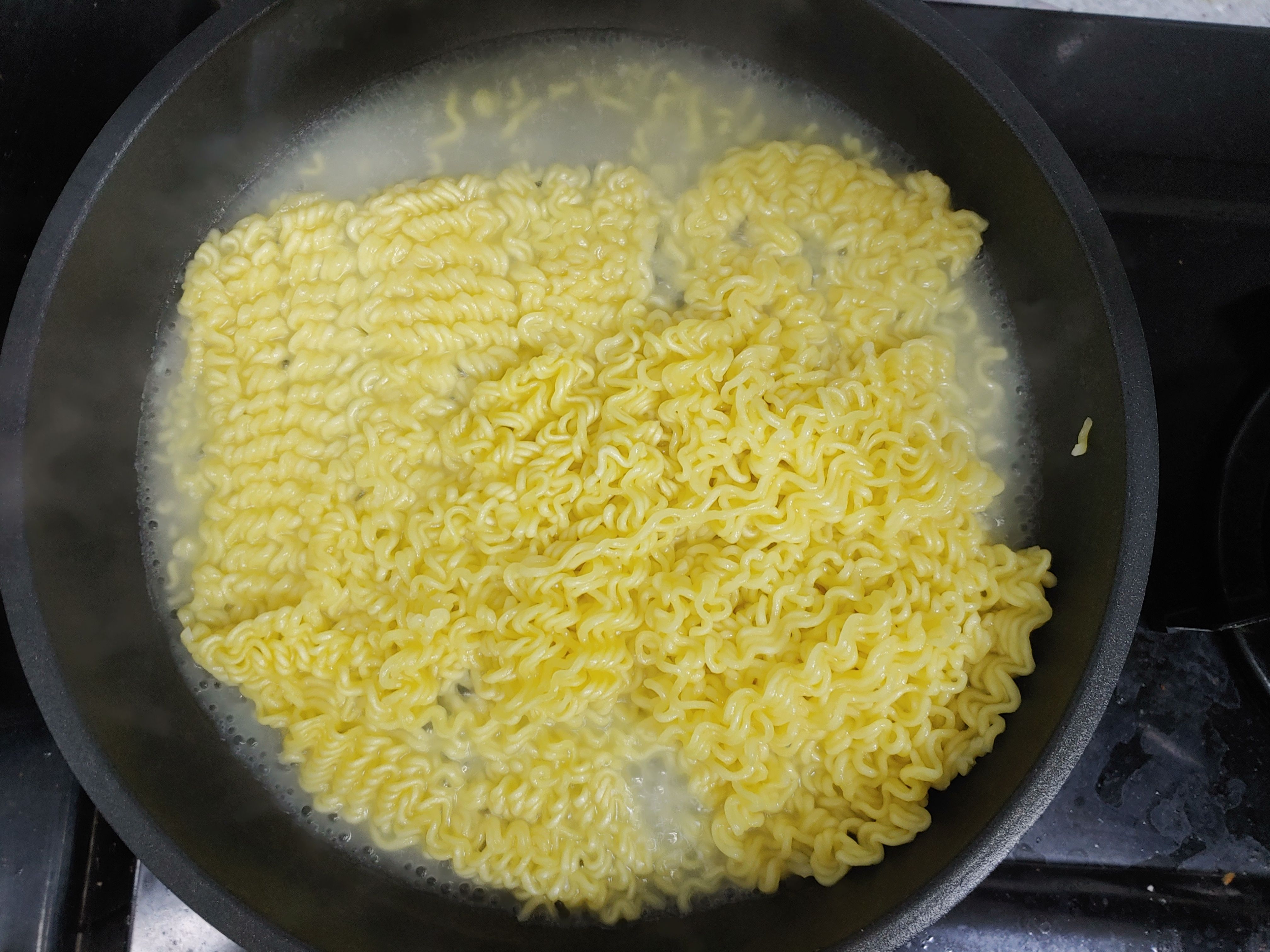 3분 정도 삶아주었는데 3분도 길었다. 뒤에 재료를 넣고 볶는 시간까지 고려하면 면이 조금이라도 풀릴때까지만 삶아도 충분한것 같다. 라면 끓이는것처럼 라면을 너무 많이 익혀버리면 면이 불어버리는 상황이 발생한다. ㅠ