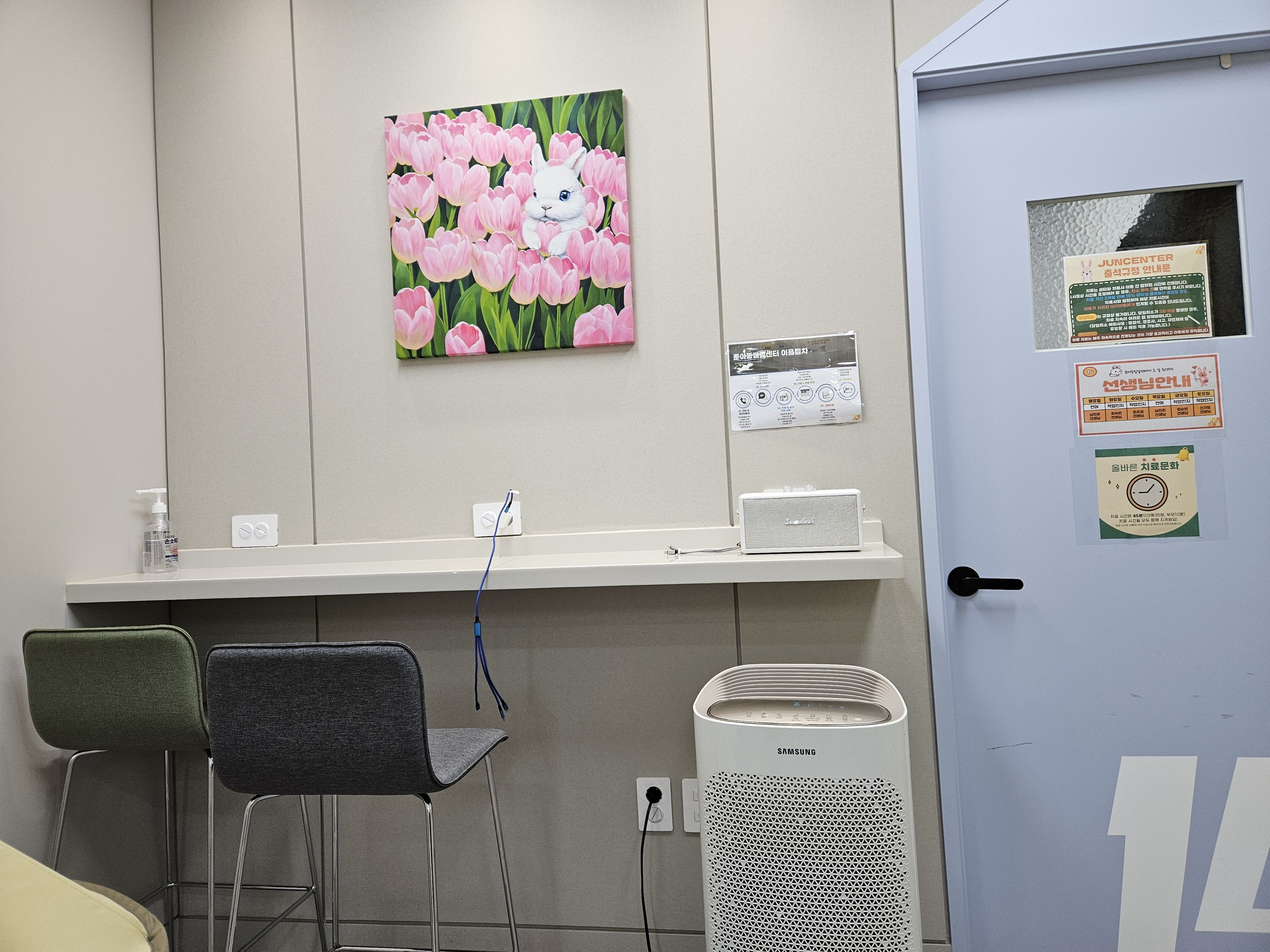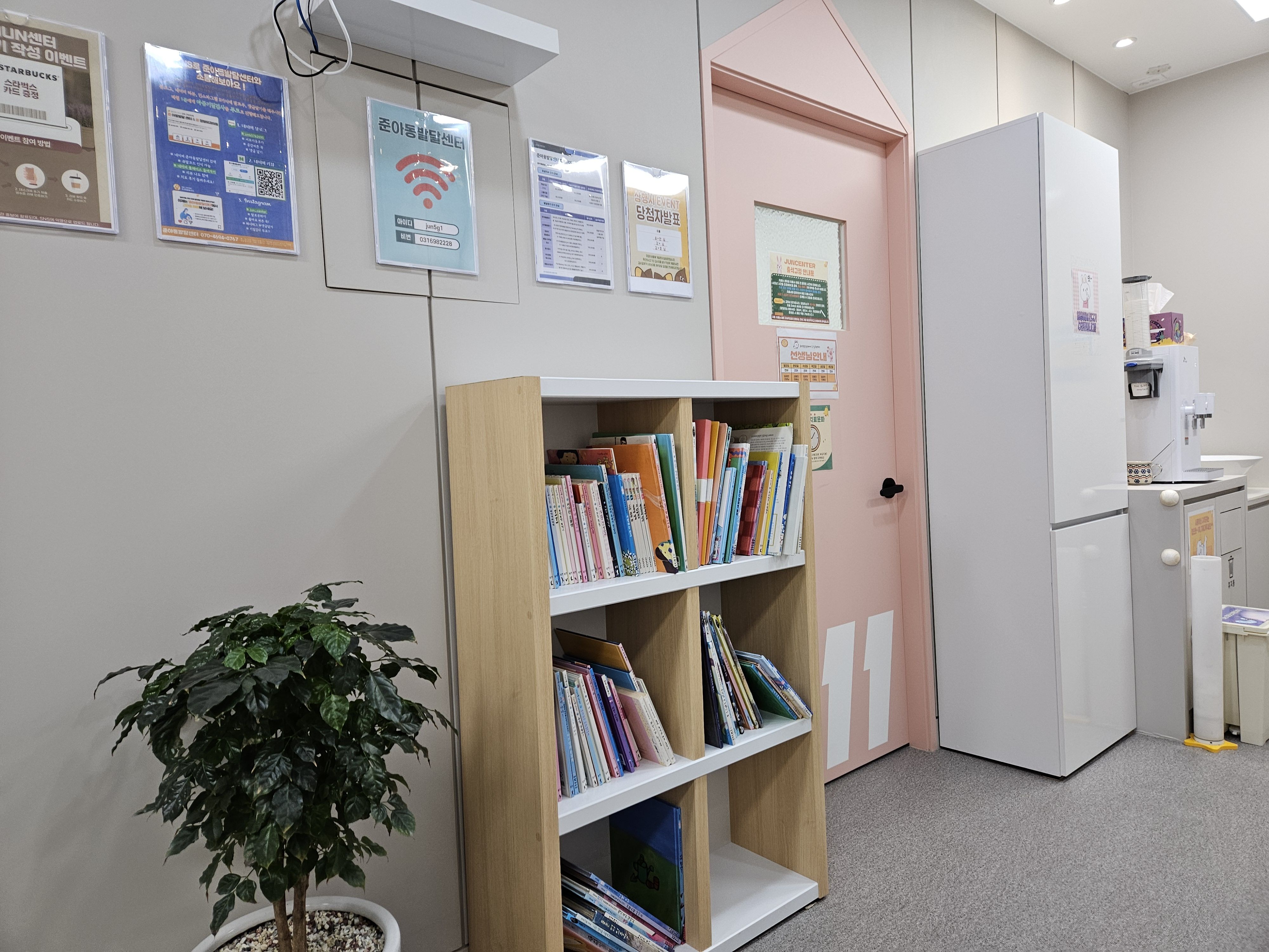 아래 모습은 준 발달센터 2층 치료실 대기실의 모습이다. 잔잔한 음악도 나오고 차도 마실 수 있고 아이의 치료를 기다리면서 그래도 편하게 쉴 수 있게 되어있다.