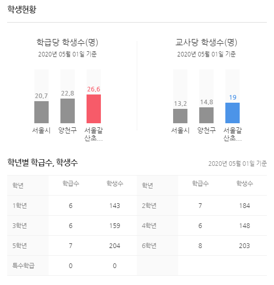 학생들이 많아서 서울 초등학교 학급당 평균 인원수가 20여명임에 반해 목동 지역에 있는 초등학교는 26명이 넘는다. 학생들이 다른 지역에 비해 많이 몰려있다는 뜻이다. 목동 아파트단지 상가들에 위치한 학원에 다니기 위해 학생들이 초등학교 고학년 쯤 되면 모여들기 시작한다.
