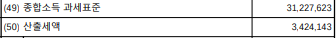 이렇게 해서 결정된 세금이 50번 항목의 산출세액이다.