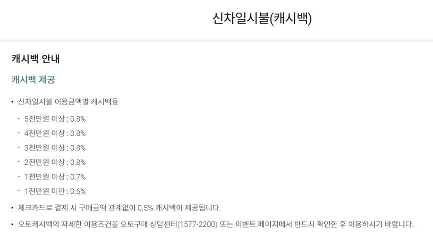 - 캐시백형(세이브-오토 이용 시) : 최대 1%