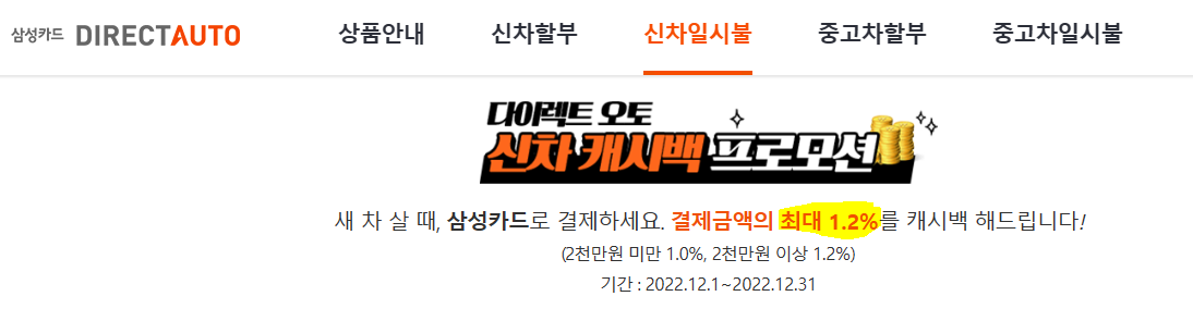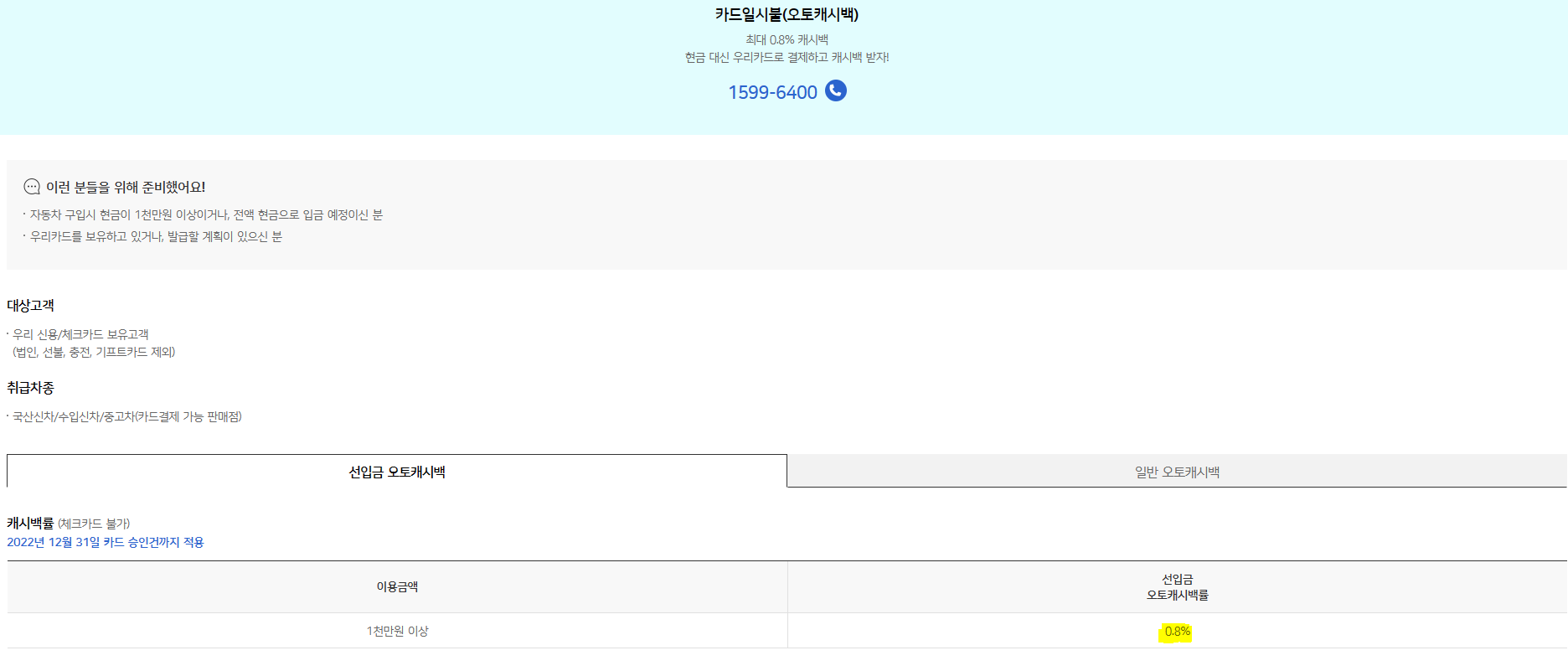 대부분 이벤트성으로 진행되는 행사이며, 이벤트의 마감일은 2022년 12월 31일이다. 아마 보름 뒤면 새로운 조건의 오토캐시백 이벤트가 올라갈 것 같은데, 아무래도 고금리 때문에 지금보다 캐시백 비율이 많이 줄어들 것으로 예상해본다.