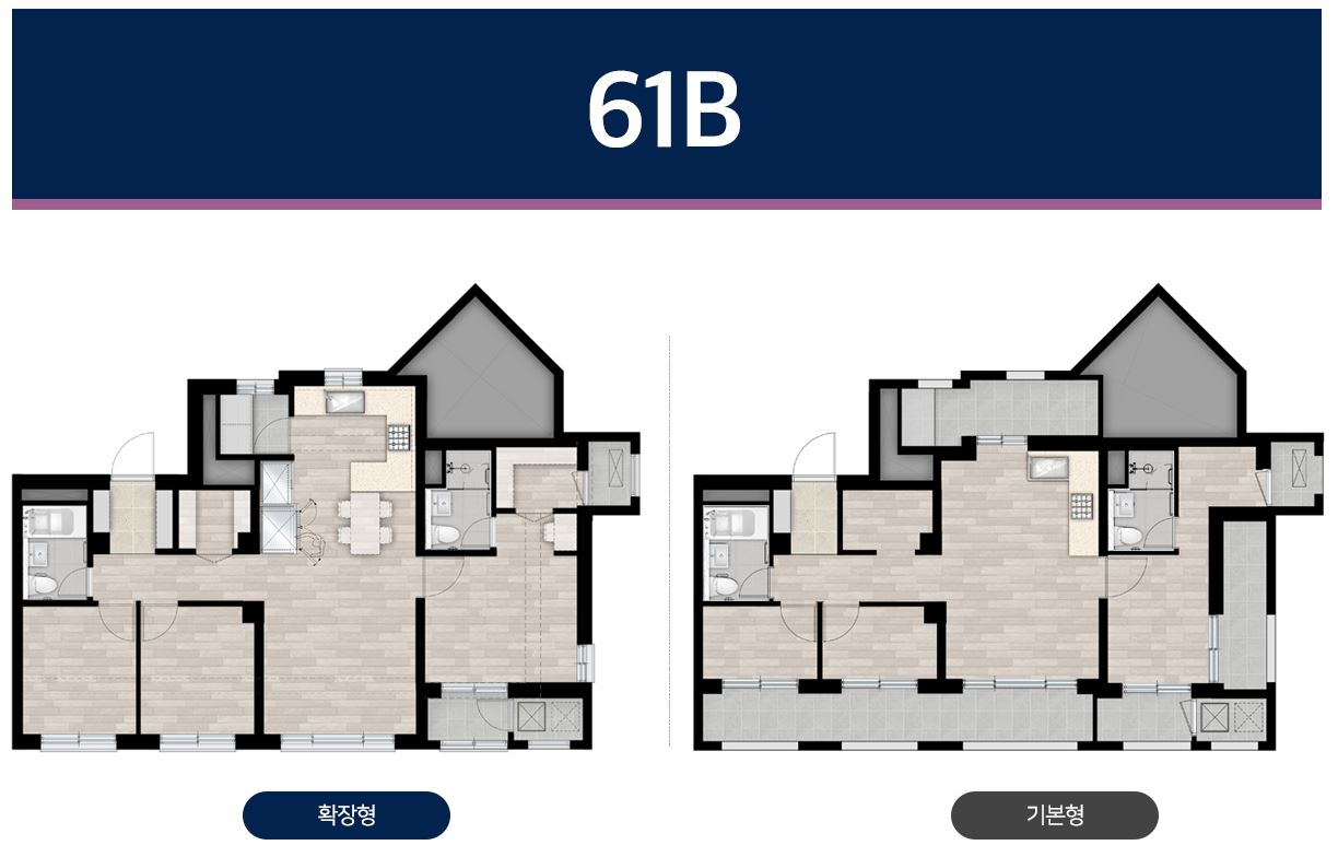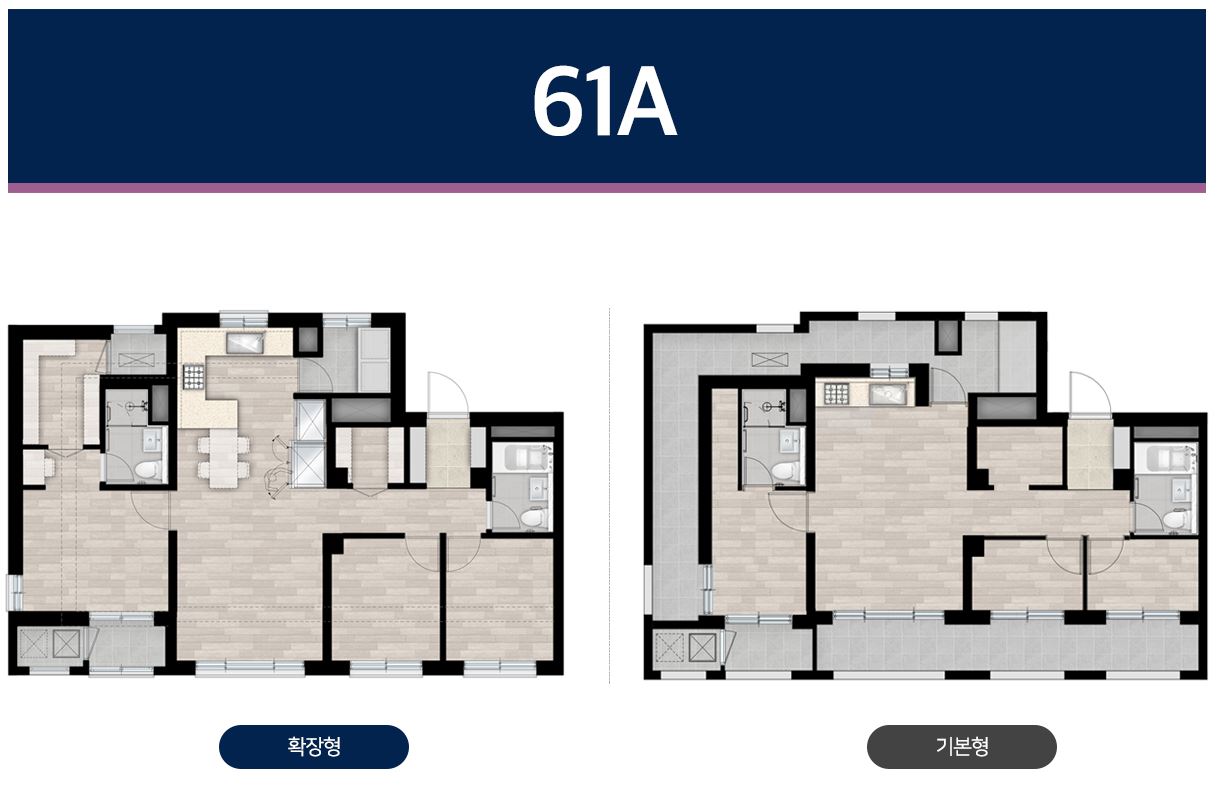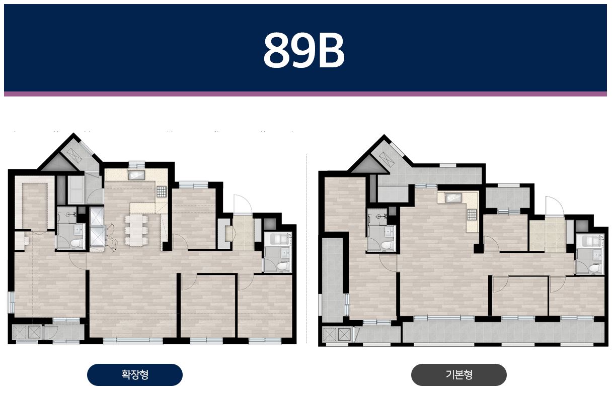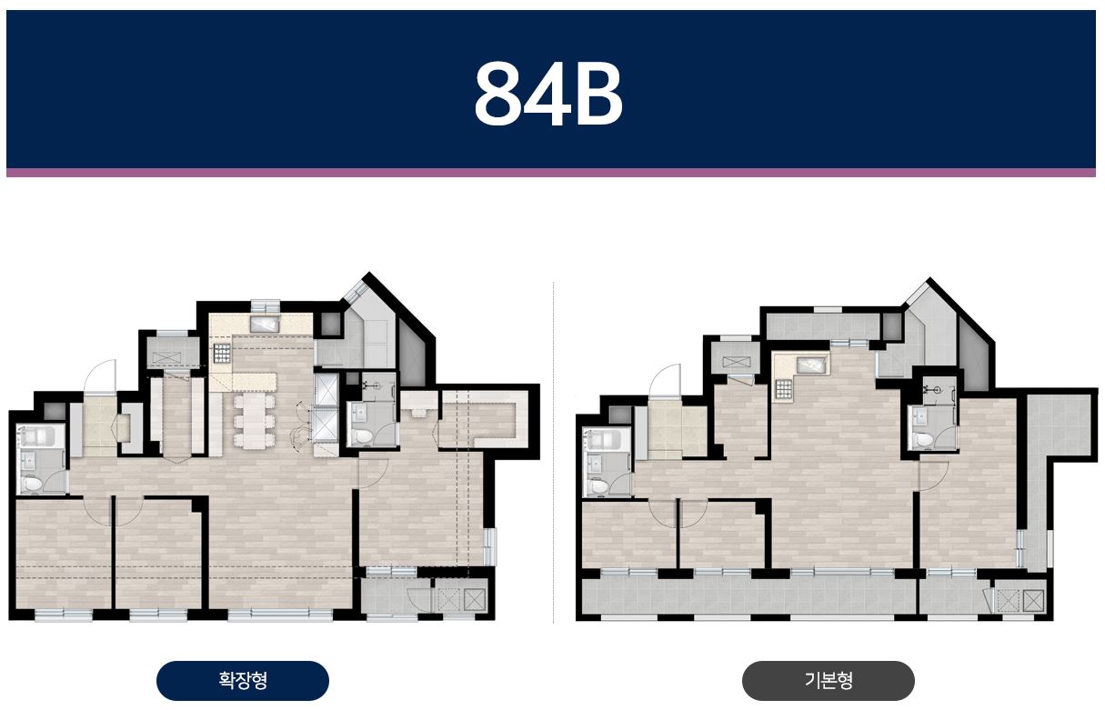 3블록과는 다르게 전용 88제곱미터 타입이 없고 전용 59 3종류와 전용 84 3종류만 나왔다.