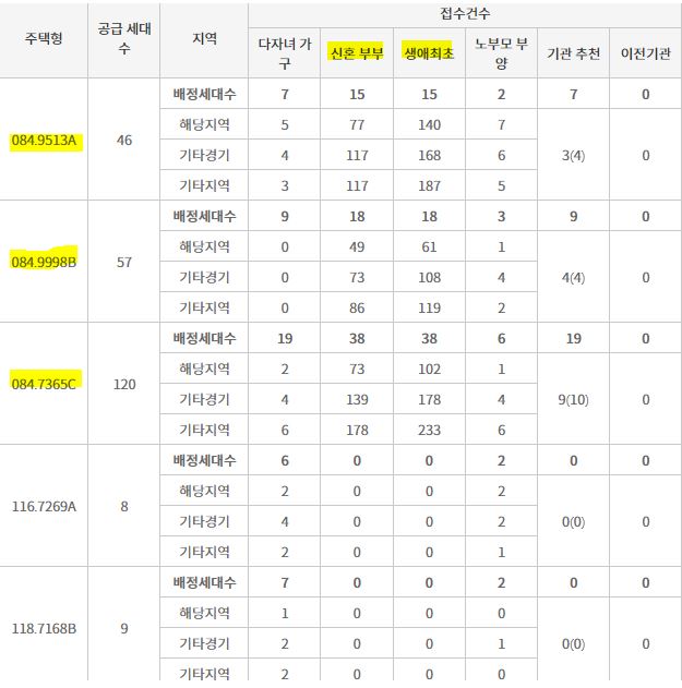 특별공급도 신혼부부 특별공급과 생애최초 특별공급에서 경쟁률이 높았다.